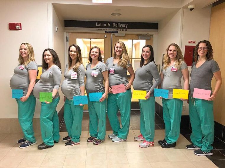 8 infermiere rimangono incinte nello stesso momento: le foto coi pancioni