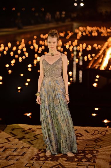 Dior ha presentato la collezione Cruise 2020, dando vita a una sfilata suggestiva e scenografica al palazzo El Badi di Marrakesh. Maria Grazia Chiuri si è ispirata alla cultura africana, mandando in passerella gonne lunghe e fluenti, caftani e tuniche, celebrando così il profondo rapporto che lega la Maison con il mondo marocchino.