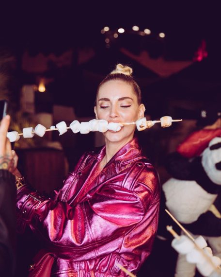 A più di una settimana di distanza dal compleanno, Chiara Ferragni ha finalmente festeggiato i suoi 32 anni con una festa spettacolare. Ha affittato per una serata il parco divertimenti Gardaland e per l'occasione ha sfoggiato un look total pink firmato Attico con top di piume, jeans a vita alta, chiodo di pelle "metallico" e make-up abbinato.