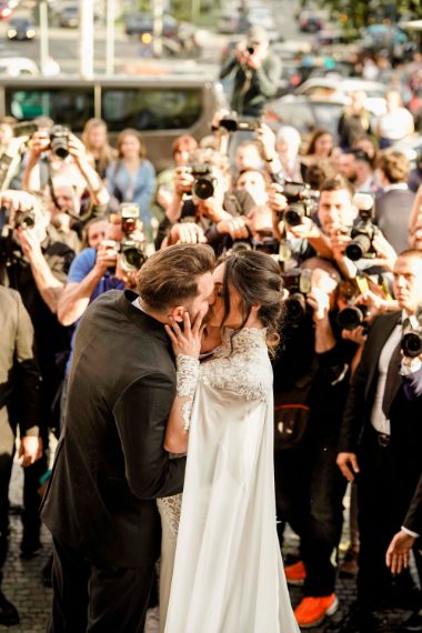 Lorella Boccia ha sposato Niccolò Presta lo scorso 1 giugno a Roma e per l'occasione ha sfoggiato due diversi look firmati da Anna Molinari di Blumarine. Per la cerimonia religiosa ha scelto un modello a sirena con il corpetto di pizzo, per il party serale ha optato per un elegante tailleur decorato con cristalli Swarovski.