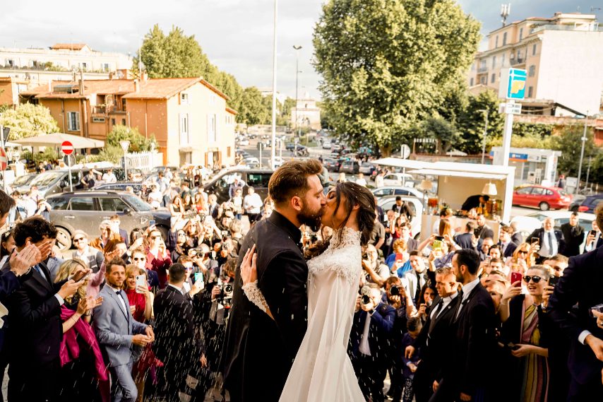 Lorella Boccia ha sposato Niccolò Presta lo scorso 1 giugno a Roma e per l'occasione ha sfoggiato due diversi look firmati da Anna Molinari di Blumarine. Per la cerimonia religiosa ha scelto un modello a sirena con il corpetto di pizzo, per il party serale ha optato per un elegante tailleur decorato con cristalli Swarovski.