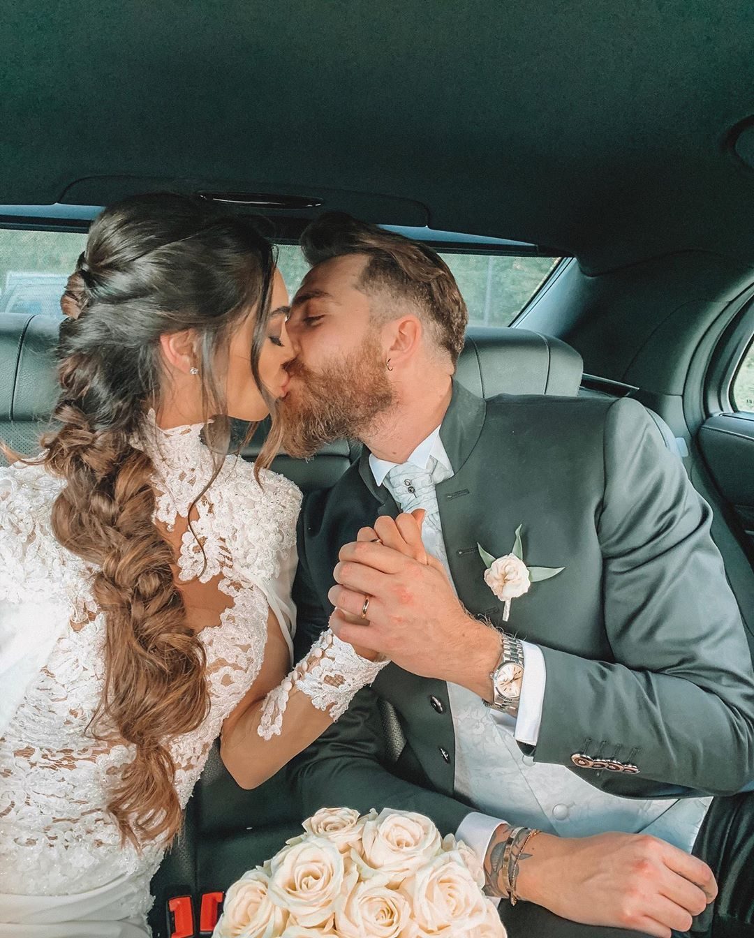 Lorella Boccia ha sposato Niccolò Presta lo scorso 1 giugno a Roma e per l'occasione ha sfoggiato due diversi look firmati da Anna Molinari di Blumarine. Per la cerimonia religiosa ha scelto un modello a sirena con il corpetto di pizzo, per il party serale ha optato per un elegante tailleur decorato con cristalli Swarovski.