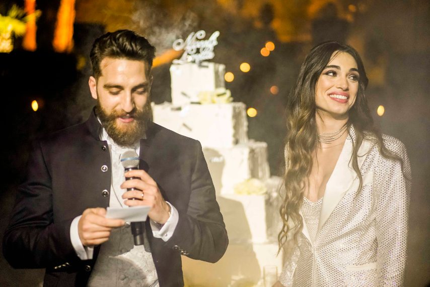 Lorella Boccia ha sposato Niccolò Presta lo scorso 1 giugno a Roma e per l'occasione ha sfoggiato due diversi look firmati da Anna Molinari di Blumarine. Per la cerimonia religiosa ha scelto un modello a sirena con il corpetto di pizzo, per il party serale ha optato per un elegante tailleur decorato con cristalli Swarovski.