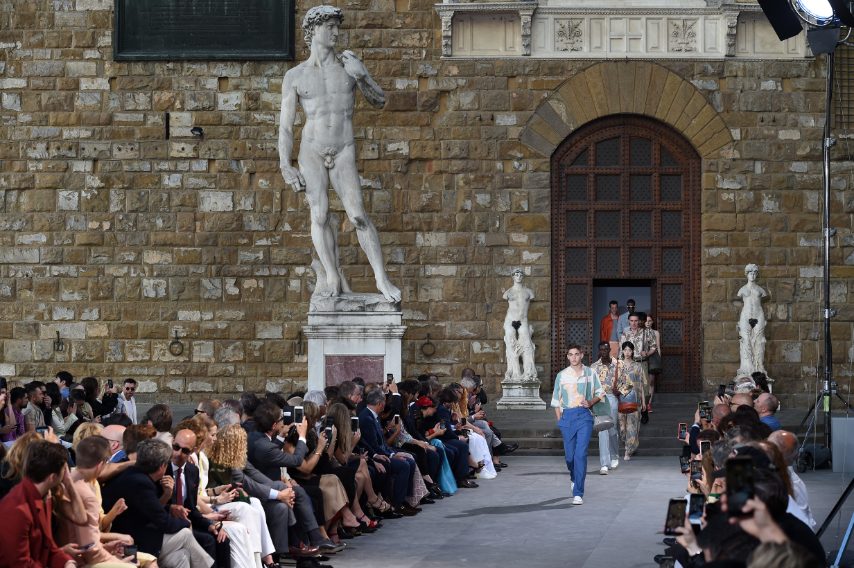 Salvatore Ferragamo ha presentato la collezione Primavera/Estate 2020 durante il Pitti Immagine Uomo, organizzando una suggestiva sfilata in Piazza della Signoria a Firenze. La Maison è tornata alle sue origini, fondendo l'amore per l'artigianato e per i materiali preziosi a degli elementi più casual e freschi.