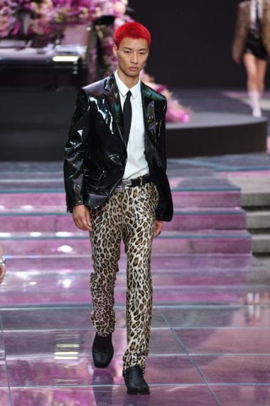 Versace ha presentato la collezione Primavera/Estate 2020 durante la Milano Fashion Week dedicata alla Moda Uomo. In passerella ha descritto l'evoluzione stilistica di un uomo dall'adolescenza alla maturità, quando scopre di poter osare con stampe animalier, colori audaci, lurex e lustrini.