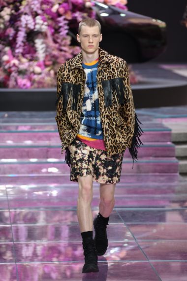 Versace ha presentato la collezione Primavera/Estate 2020 durante la Milano Fashion Week dedicata alla Moda Uomo. In passerella ha descritto l'evoluzione stilistica di un uomo dall'adolescenza alla maturità, quando scopre di poter osare con stampe animalier, colori audaci, lurex e lustrini.