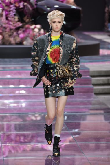 Versace ha presentato la collezione Primavera/Estate 2020 durante la Milano Fashion Week dedicata alla Moda Uomo. In passerella ha descritto l'evoluzione stilistica di un uomo dall'adolescenza alla maturità, quando scopre di poter osare con stampe animalier, colori audaci, lurex e lustrini.