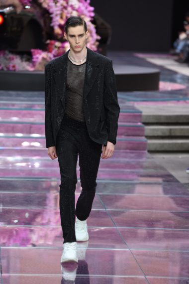 Versace ha presentato la collezione Primavera/Estate 2020 durante la Milano Fashion Week dedicata alla Moda Uomo. In passerella ha descritto l'evoluzione stilistica di un uomo dall'adolescenza alla maturità, quando scopre di poter osare con stampe animalier, colori audaci, lurex e lustrini.