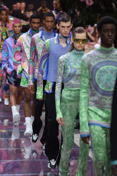 Versace ha presentato la collezione Primavera/Estate 2020 durante la Milano Fashion Week dedicata alla Moda Uomo. In passerella ha descritto l'evoluzione stilistica di un uomo dall'adolescenza alla maturità, quando scopre di poter osare con stampe animalier, colori audaci, lurex e lustrini.