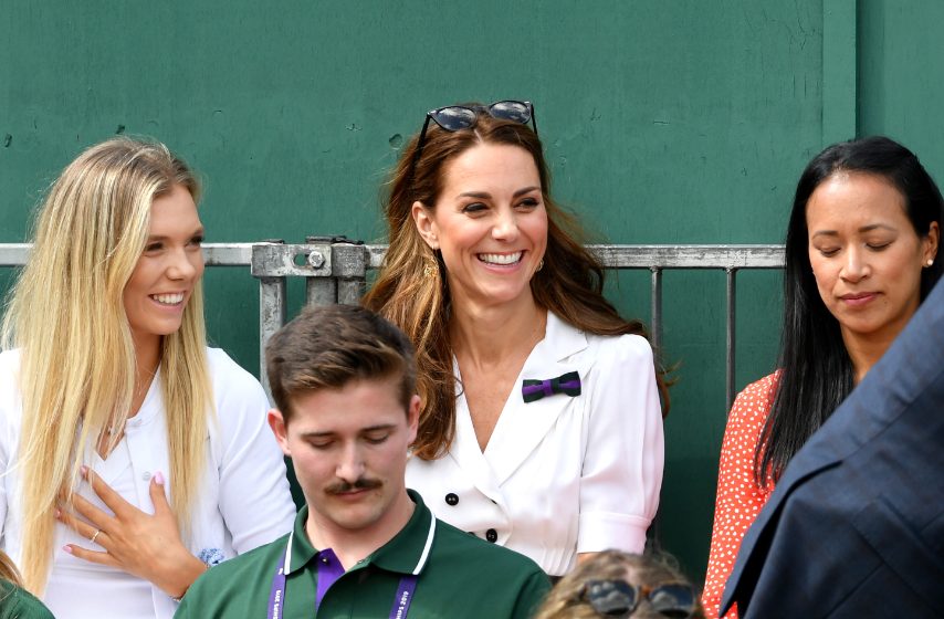 Kate Middleton ha preso parte al secondo giorno di gare del torneo di Wimbledon, evento di cui è madrina. Per l'occasione ha sfoggiato un look elegantissimo con un abito chemisier total white di Suzannah, i décolleté di Gianvito Rossi e una minibag di Alexander McQueen.