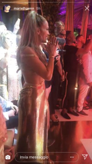 Jennifer Lopez con l'abito oro al party dei suoi 50 anni