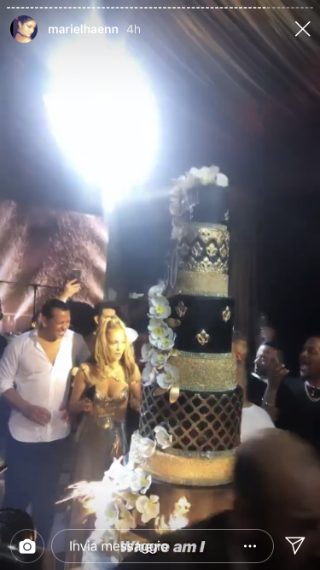 Jennifer Lopez con l'abito oro al party dei suoi 50 anni