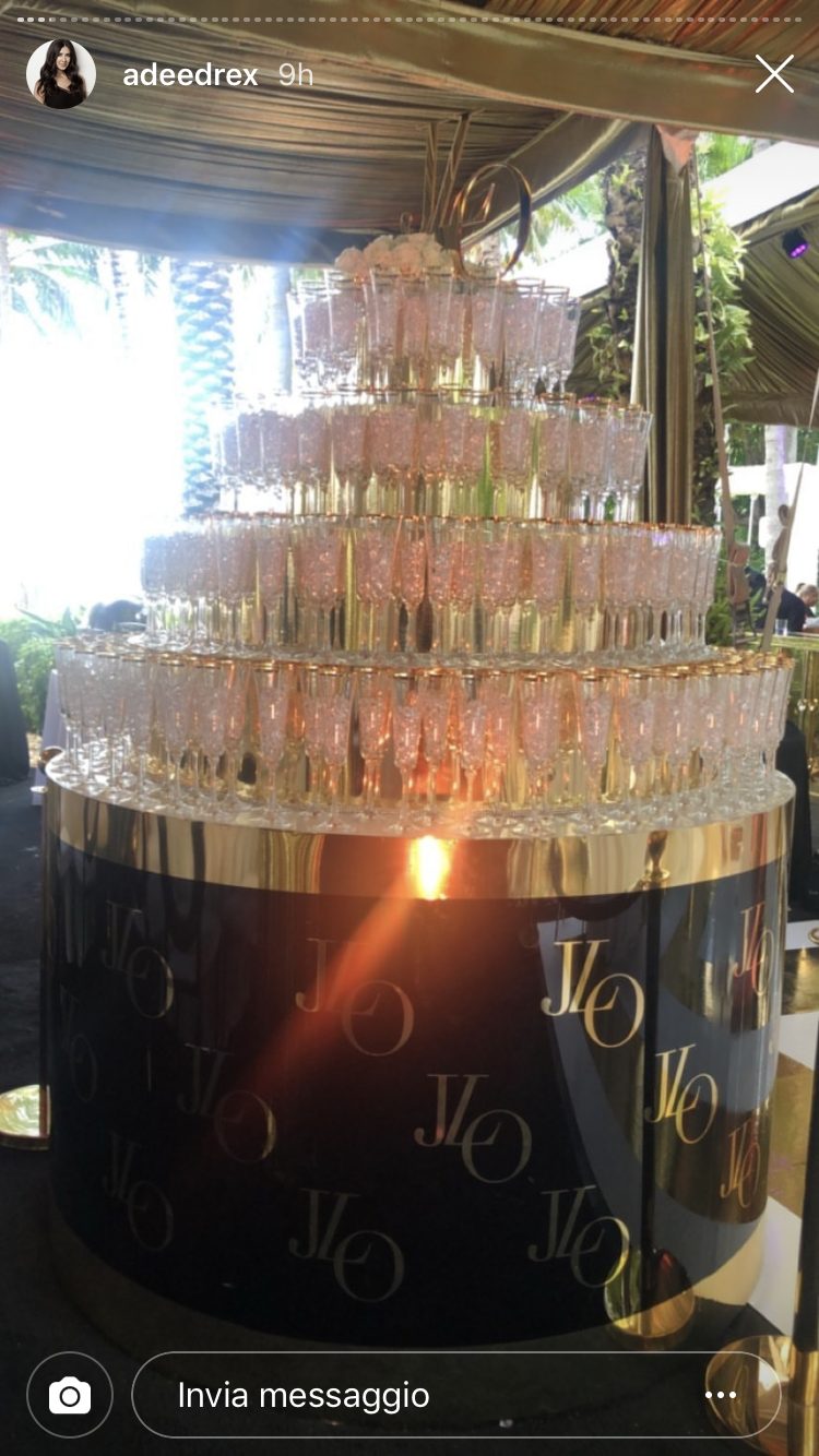 Jennifer Lopez con l'abito oro al party dei suoi 50 anni