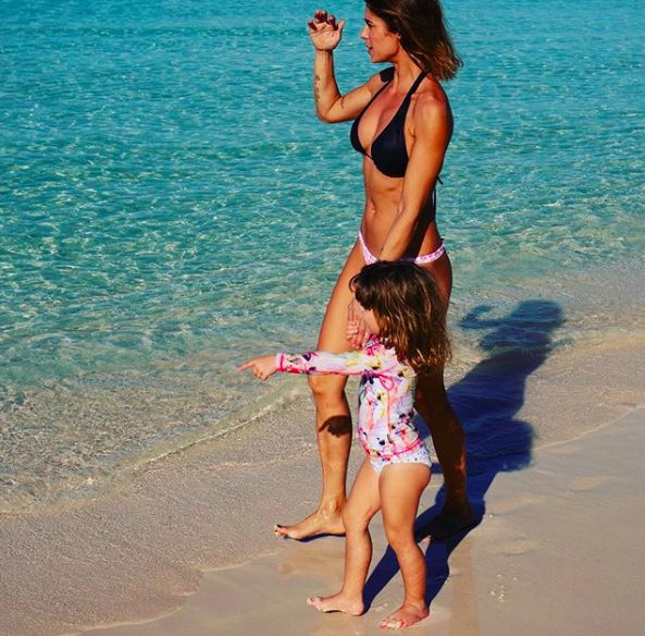 Le mamme famose al mare con le figlie con costumi coordinati