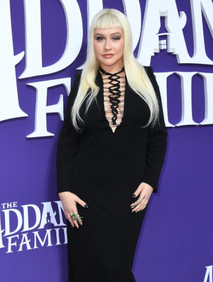 Christina Aguilera ha preso parte alla prima del film "The Addams Family" a Los Angeles e per l'occasione ha sfoggiato un inedito look gotico ispirato a Morticia. Ha indossato un abito total black, completando il tutto con una piega extra liscia portata con una mini frangia.