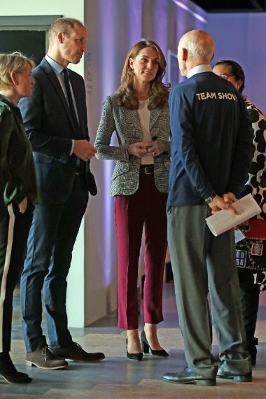 Kate Middleton ha detto (temporaneamente) addio ai look da principessa ed è passata a qualcosa di più casual. In occasione della visita ufficiale a un'associazione di beneficenza di Londra, ha lasciato a casa gonne e tacchi a spillo per sfoggiare dei pantaloni bordeaux di Joseph, abbinati a una giacca Principe dei Galles di Smythe e a dei décolleté con il tacco medio e quadrato di Gianvito Rossi.