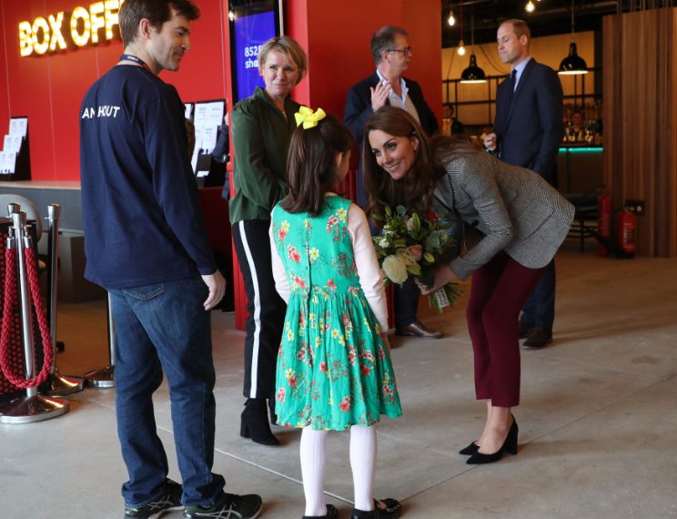 Kate Middleton ha detto (temporaneamente) addio ai look da principessa ed è passata a qualcosa di più casual. In occasione della visita ufficiale a un'associazione di beneficenza di Londra, ha lasciato a casa gonne e tacchi a spillo per sfoggiare dei pantaloni bordeaux di Joseph, abbinati a una giacca Principe dei Galles di Smythe e a dei décolleté con il tacco medio e quadrato di Gianvito Rossi.
