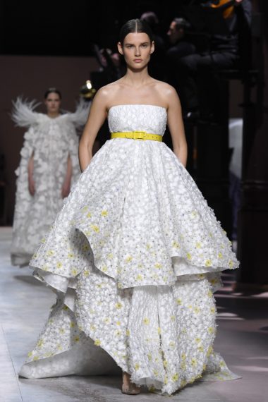 Givenchy ha presentato la collezione Haute Couture per la Primavera/Estate 2020 durante la Paris Fashion Week. Clare Waight Keller ha trasformato la donna in un fiore tra balze, gonne voluminose e colori vitaminici.