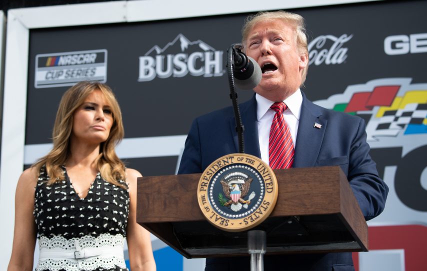 Donald e Melania Trump hanno partecipato alla 500 miglia di Daytona ma è stata la First Lady con il suo look ad attirare le attenzioni del pubblico. Ha infatti dato un piccolo anticipo di primavera con un abito a pois firmato Dior, al quale ha abbinato un paio di décolleté bianchi di Louboutin.