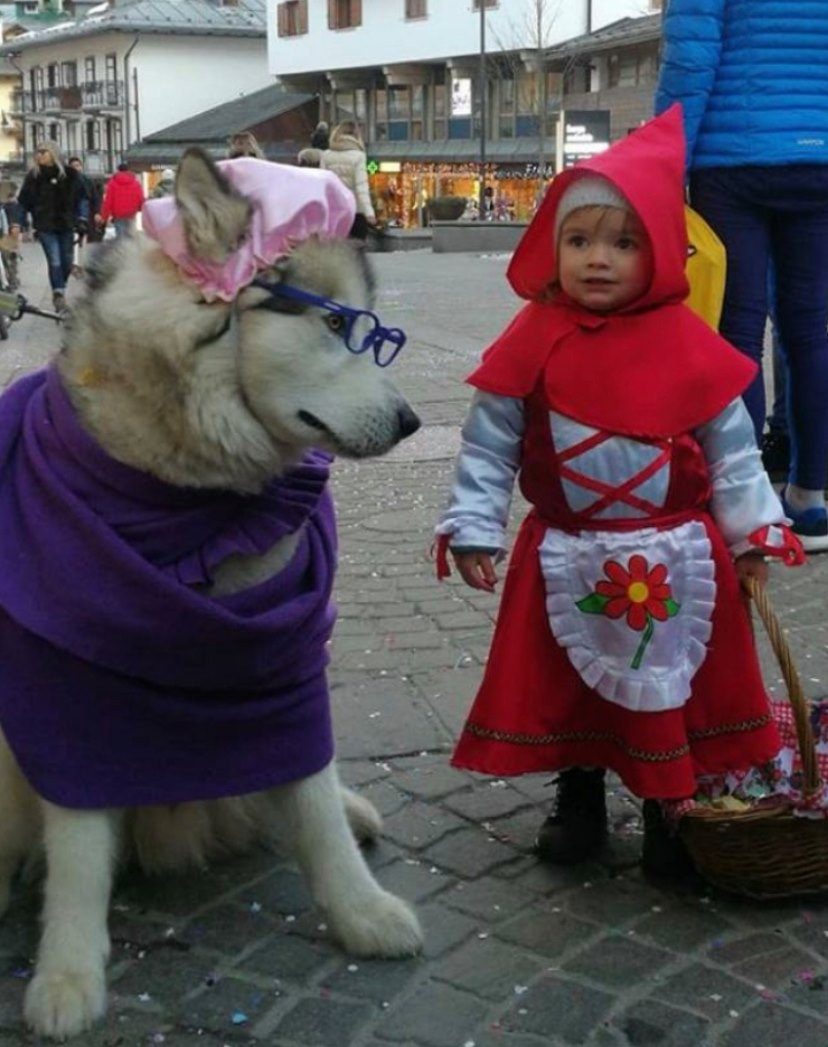 La piccola Agata di Cortina e il suo cagnolone Yanuk sono ormai le stelle del web. L’immagine della bimba ampezzana di 2 anni vestita da cappuccetto rosso con l’husky di famiglia, che interpreta il lupo cattivo travestito “da nonna”, ha fatto il giro dei social incassando migliaia di like.