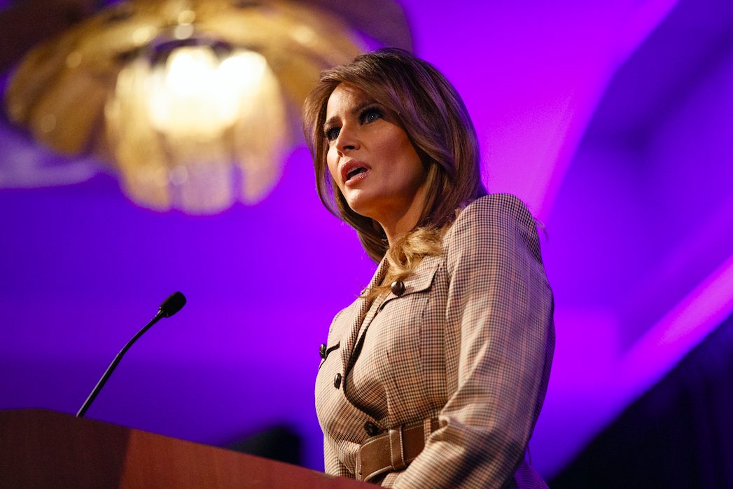 Melania Trump ama la pelle pitonata e di recente, durante una conferenza in cui ha presentato il suo progetto Be Best, ha indossato dei décolleté di Manolo Blahnik in pelle di serpente. Li ha abbinati a una giacca scozzese di Brooks Brothers, apparendo più glamour che mai.