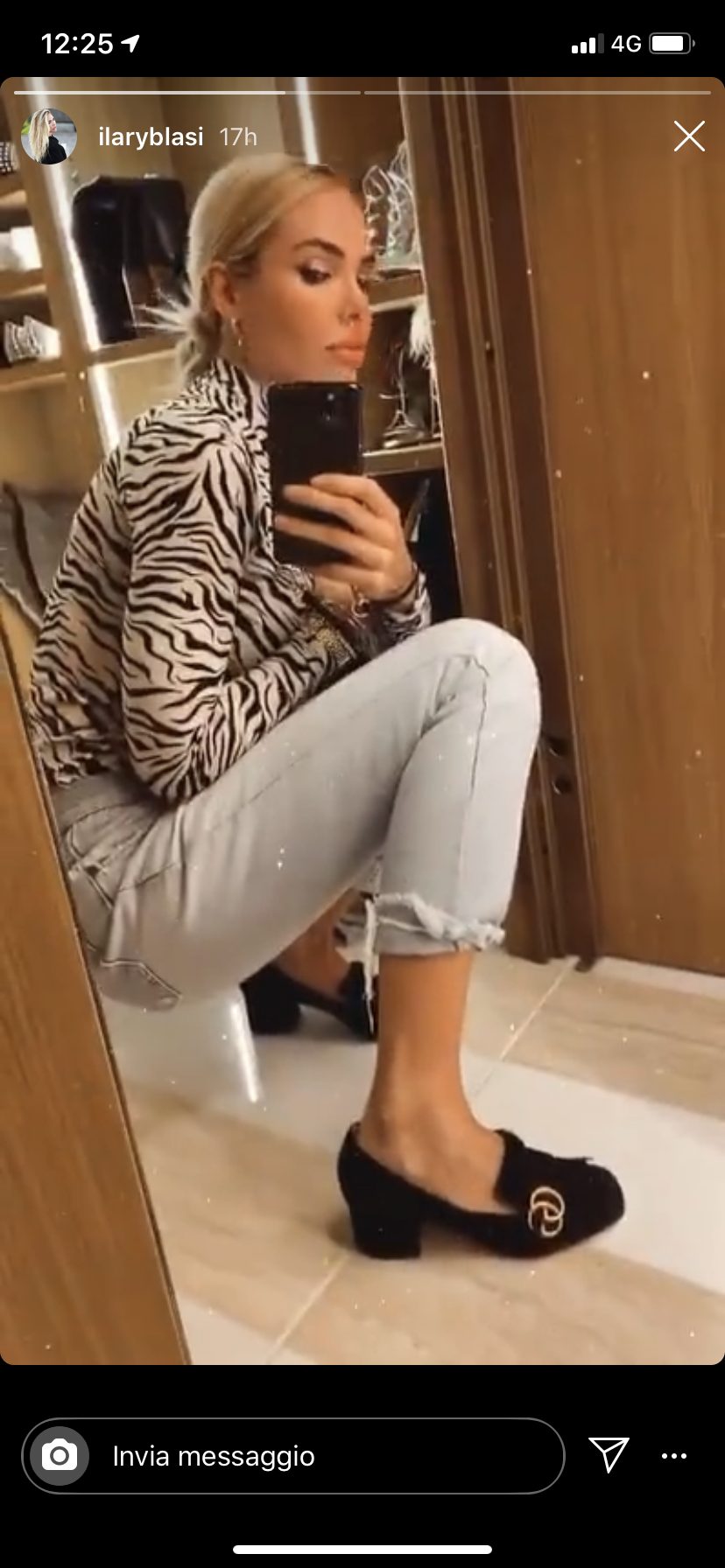 A fine quarantena Ilary Blasi sfoggia sui social un nuovo look trendy e griffato. La conduttrice indossa un top animalier con jeans chiari e completa il tutto con un paio di scarpe firmate Gucci.
