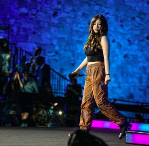 • Anna Tatangelo in tuta e sneakers durante le prove