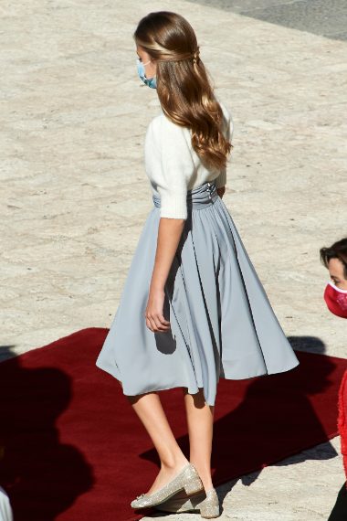 Leonor di Spagna ha partecipato con la famiglia alle celebrazioni del National Day e per l'occasione ha rivoluzionato il suo stile. Ha detto addio alle scarpe raso terra, ha indossato per la prima volta i tacchi, per la precisione un paio di mocassini di Mascarò con un tacco quadrato e di qualche centimetro.