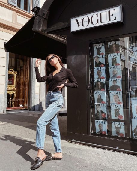 Il blazer in autunno va indossato senza nulla sotto, come Cristina Marino alla Milano Fashion Week