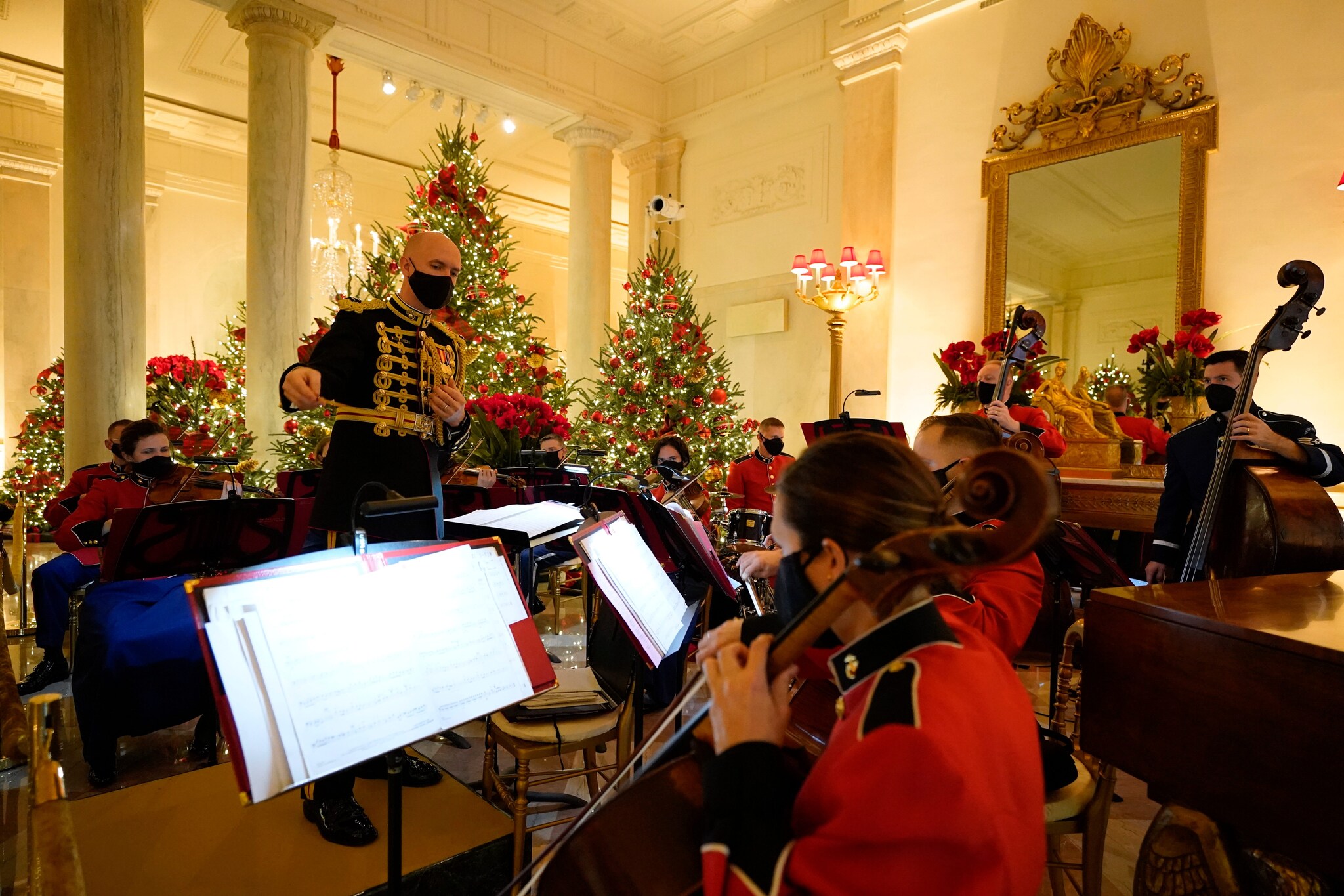 Quello del 2020 sarà l'ultimo Natale che i Trump trascorreranno alla Casa Bianca ma non per questo la First Lady ha rinunciato alla tradizione degli addobbi. Ha decorato le stanze della residenza con enormi alberi illuminati da lucine bianche, vischio, palline rosse e simboli patriottici che rendono omaggio agli Stati Uniti.