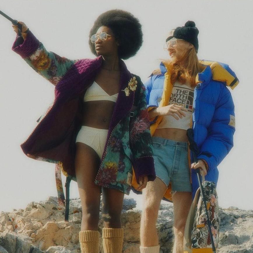 The North Face e Gucci hanno unito le loro forze per dare vita a una esclusiva capsule collection di piumini, giacche a vento, t-shirt e accessori per l'inverno. I capi sono la fusione perfetta di sport e lusso e sono tutti decorate con stampe floreali e con l'iconica doppia G della Maison.