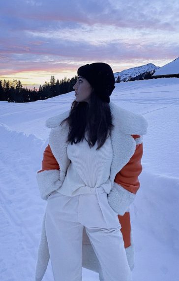 • Cecilia Rodriguez con un total look white e cappotto teddy