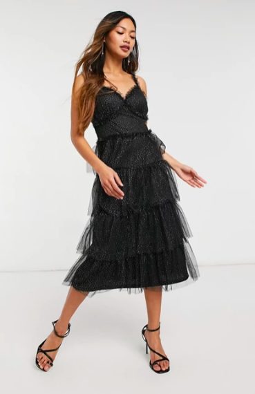Volete aggiungere un tocco esuberante ai vostri look total black? La moda del momento richiede di puntare sugli abiti neri ma glitterati. Le star ne vanno matte e, tra brillantini, cristalli e micro.paillettes, riescono a rendere scintillanti anche i loro outfit più sobri.