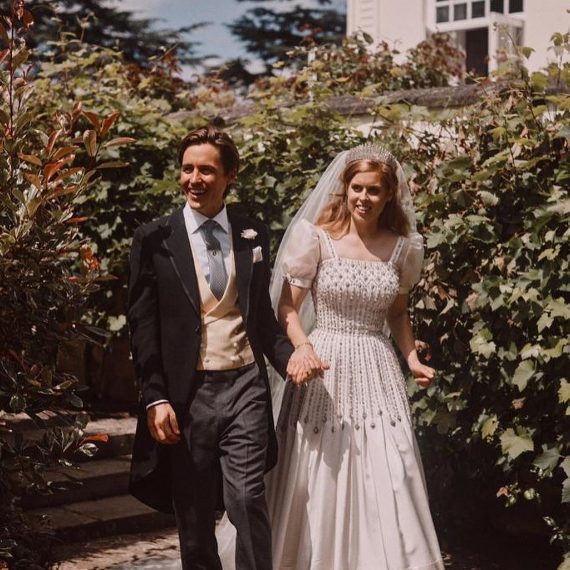 Beatrice di York con l'abito da sposa appartenuto alla regina Elisabetta