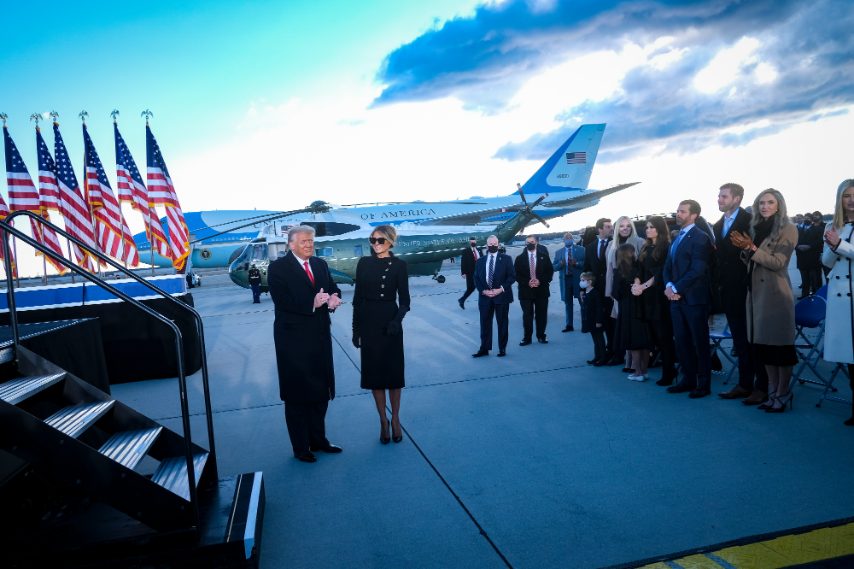 Melania Trump ha detto addio alla Casa Bianca al fianco del marito Donald e, a poche ore dall'insediamento di Joe Biden, è apparsa nuovamente in pubblico. Lo ha fatto con un look total black griffatissimo, caratterizzato da giacca Chanel, tubino Dolce&Gabbana, décolleté Louboutin e una Birkin bag di Hermès da oltre 55.000 euro.