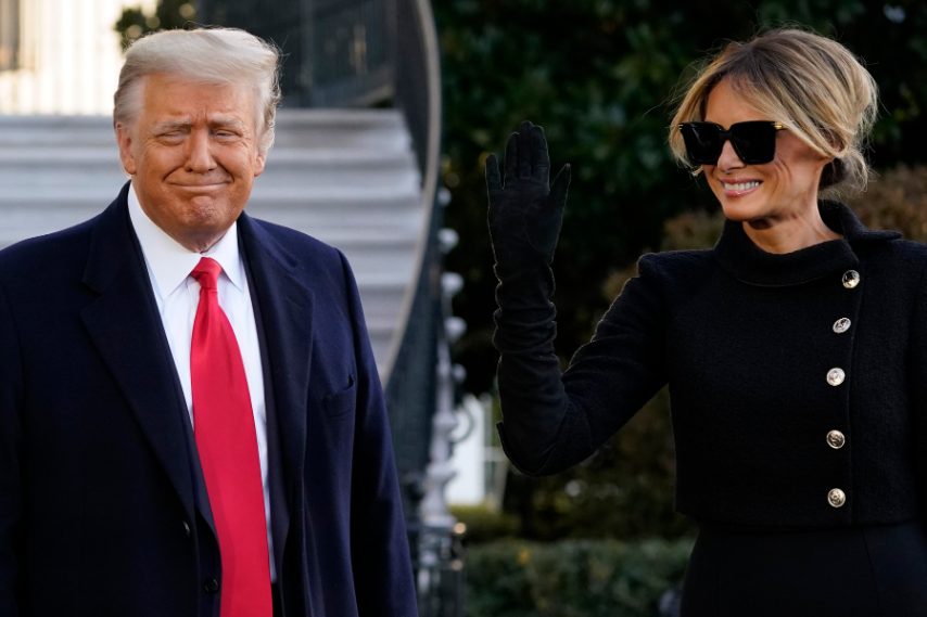 Melania Trump ha detto addio alla Casa Bianca al fianco del marito Donald e, a poche ore dall'insediamento di Joe Biden, è apparsa nuovamente in pubblico. Lo ha fatto con un look total black griffatissimo, caratterizzato da giacca Chanel, tubino Dolce&Gabbana, décolleté Louboutin e una Birkin bag di Hermès da oltre 55.000 euro.