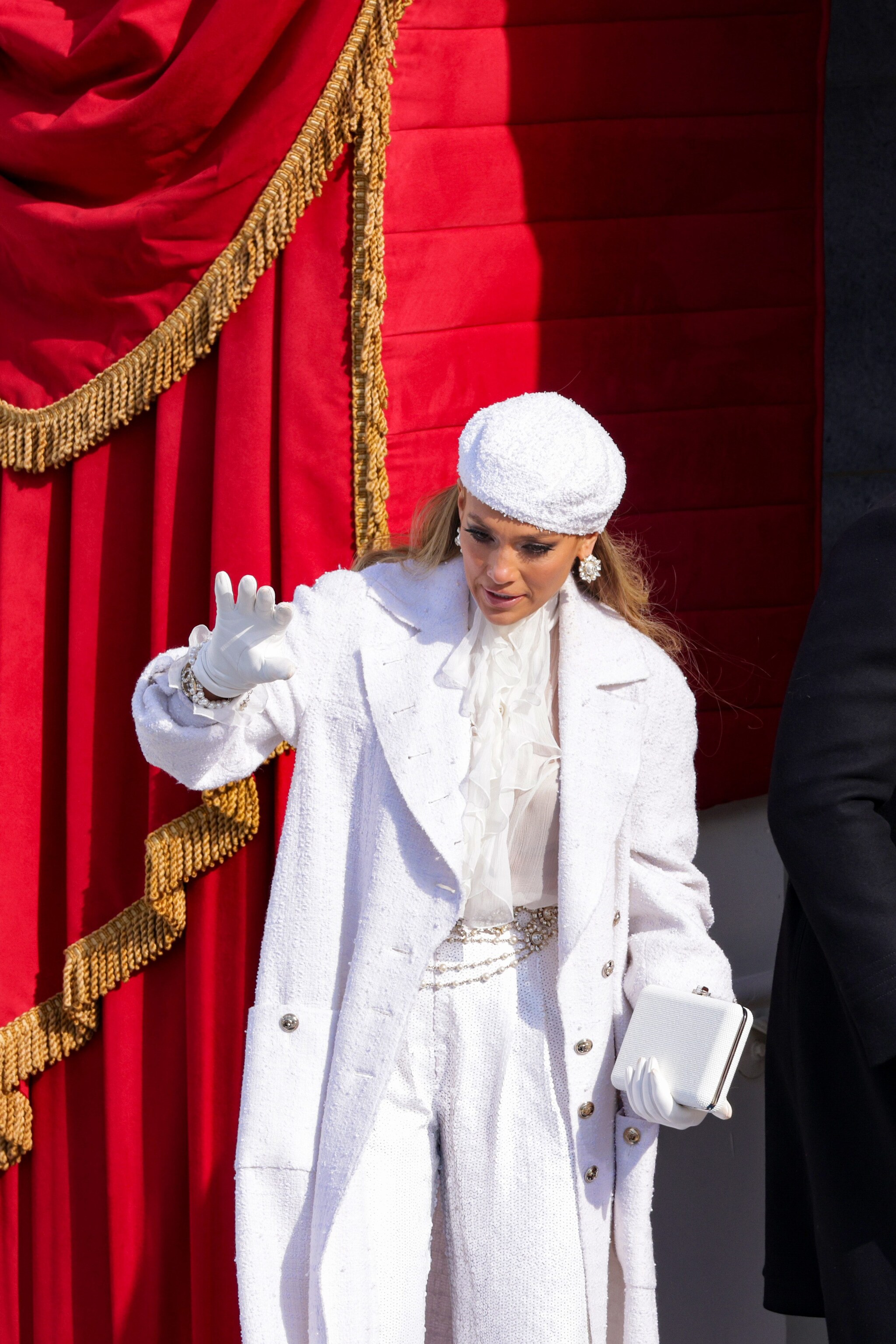 Jennifer Lopez, grande sostenitrice di Joe Biden, ha partecipato al fatidico giorno dell'insediamento del nuovo Presidente degli USA. All'Inauguration Day si è esibita in una performance canora che ha fatto seguito a quella di un'altra grande star della musica, Lady Gaga. J-Lo per l'occasione ha scelto un look total white di Chanel, colore che richiama le suffragette, che hanno combattuto per il diritto di voto delle donne. Non a caso, proprio di bianco si era vestita Kamala Harris per il suo discorso della vittoria.
