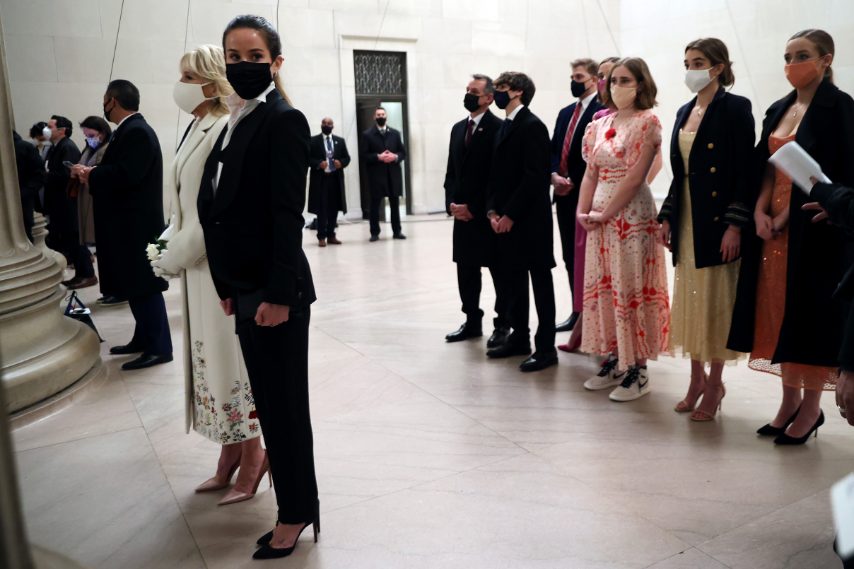Jill Biden si è cambiata d'abito durante i festeggiamenti serali dell'Inauguration Day. Sebbene non si sia potuto tenere il tradizionale ballo tra Presidente e First Lady, è stato organizzato un concerto virtuale presentato da Tom Hanks. La Prima donna americana ha puntato tutto sul bianco con un completo firmato da Gabriela Hearst, la nuova direttrice creativa di Chloé, decorato con dei fiori variopinti, simbolo dei diversi paesi americani. A completare il tutto, dei décolleté in rosa metallizzato firmati SJP.