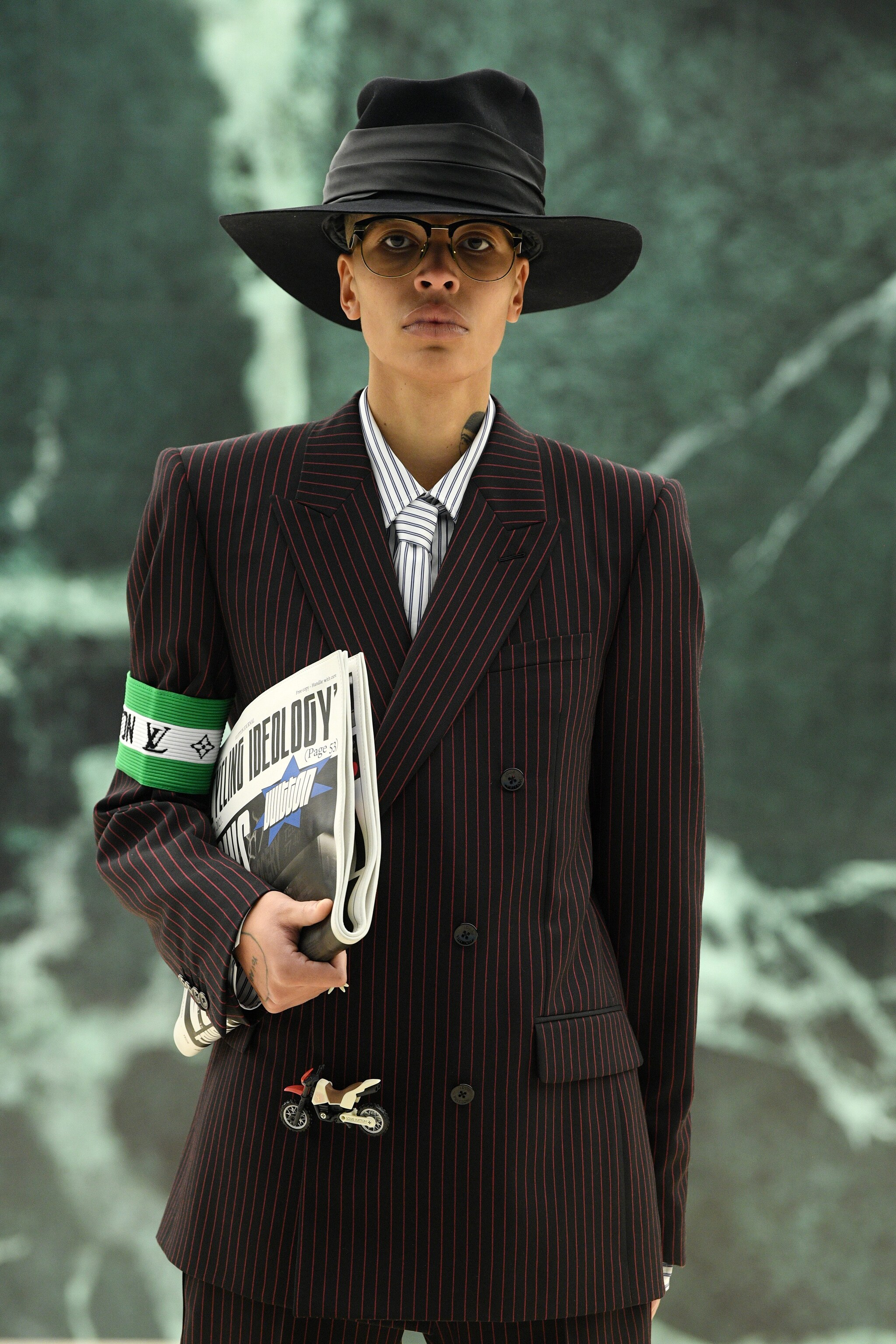 Il designer Virgil Abloh scardina tutte le convenzioni dell'abbigliamento maschile e immagina i classici in una chiave nuova e anticonvenzionale: dal gessato al cappotto doppiopetto, dalla tuta da pilota al cardigan in lana. Sono i dettagli a fare la differenza: borsoni colorati, bottoni a forma di aeroplanino, occhiali vintage e stivali texani