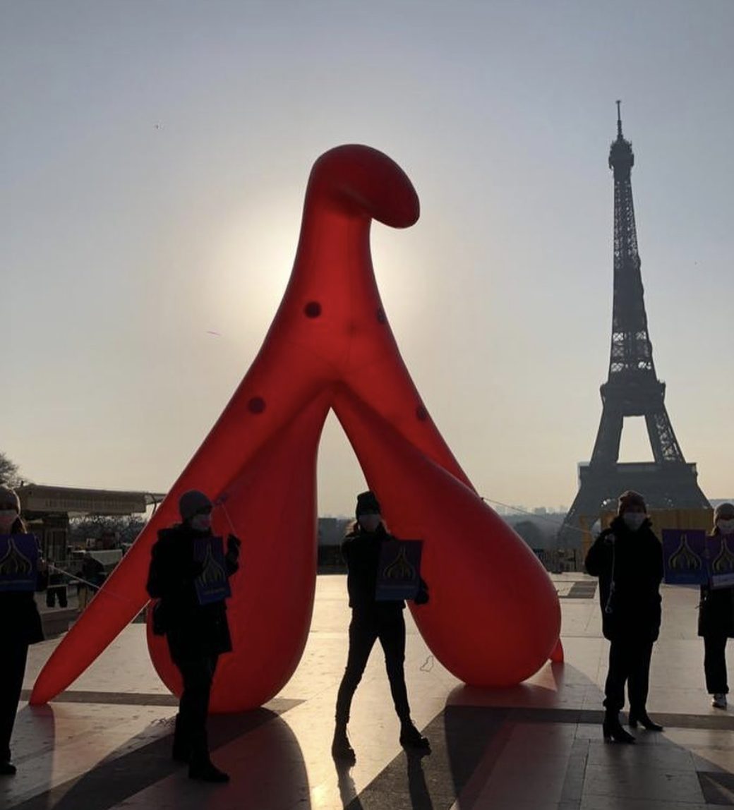 Un gruppo di attiviste parigine ha deciso di celebrare l'8 marzo con una insolita istallazione artistica: hanno trasportato di fronte alla Tour Eiffel, simbolo della città, un gigantesco clitoride "gonfiabile" alto cinque metri, di colore rosso. Una vera e propria azione dimostrativa per dare visibilità a un tema di cui si parla ancora troppo poco: il piacere femminile.