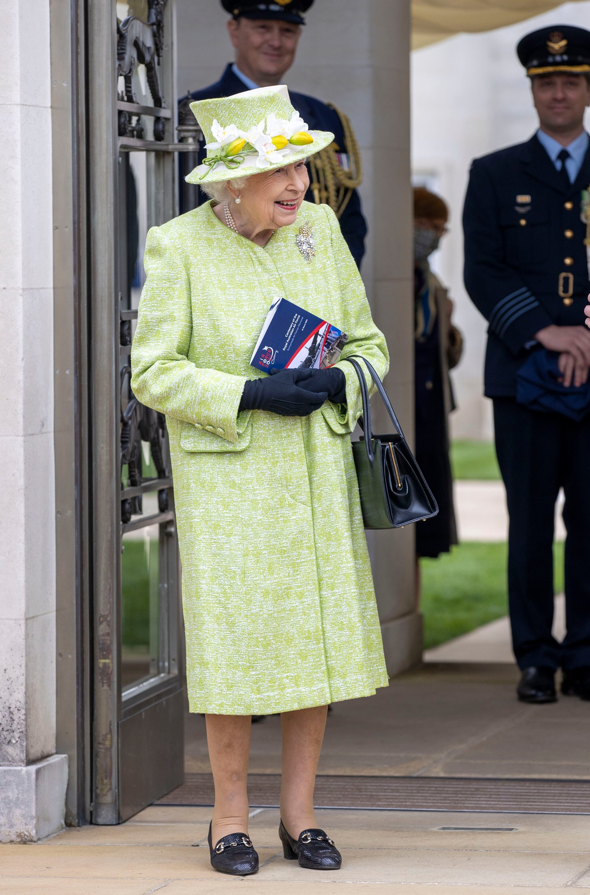 Dopo molte apparizioni in videoconferenza, il 31 marzo la regina Elisabetta si è di nuovo mostrata in pubblico in occasione della visita il Commonwealth Air Forces Memorial nel Surrey. La sovrana, sorridente senza mascherina, indossava un soprabito verde prato e un cappellino decorato da tulipani e altri fiori: una scelta molto primaverile che trasmetteva fiducia e speranza.
