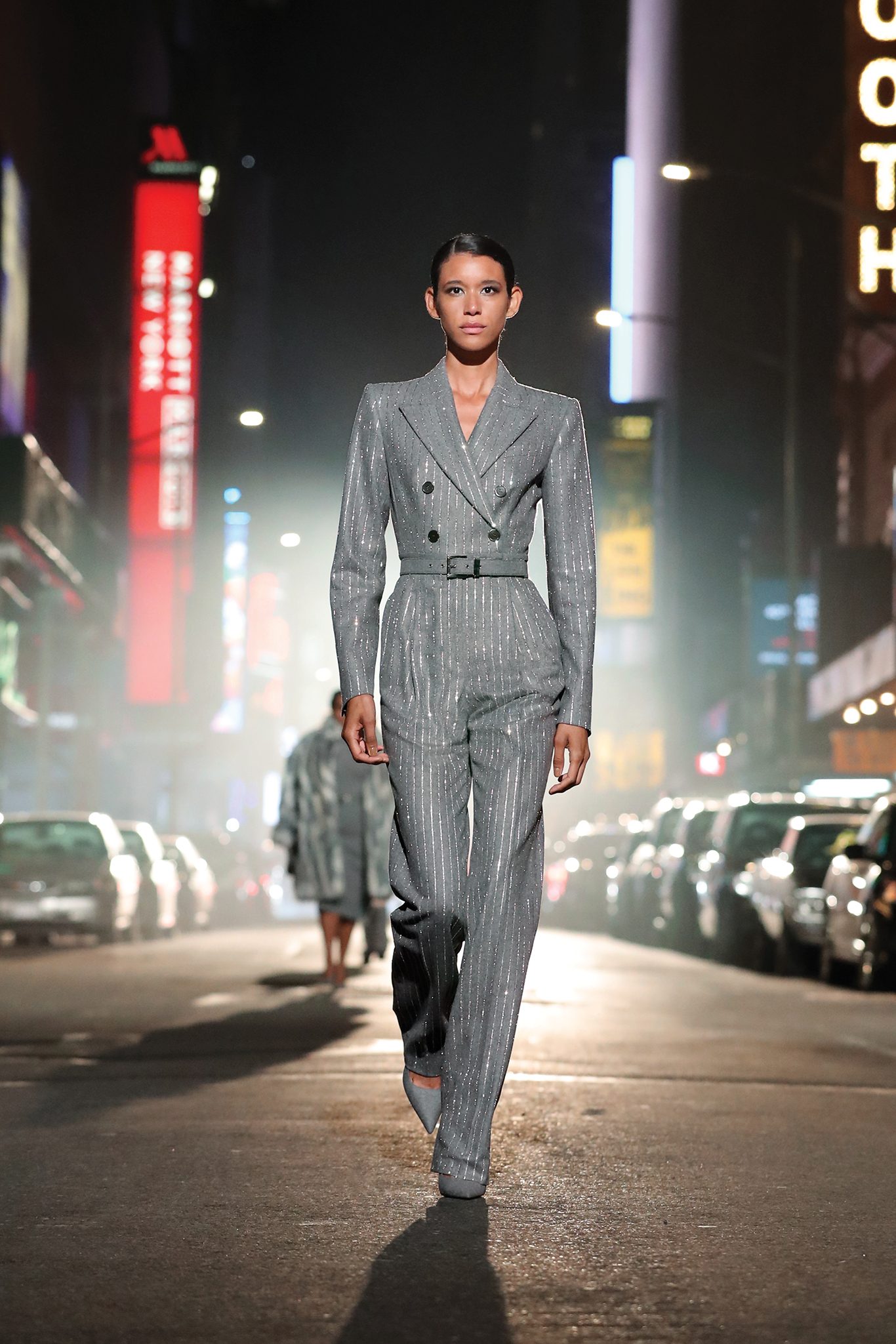 Per i 40 anni del brand Michael Kors ha voluto fare un omaggio a New York, la città dove ha mosso i suoi primi passi, tra il mitico Studio54 e le vetrine sulla Madison Avenue. Le modelle hanno sfilato proprio per le strade della Grande Mela, nel distretto dei teatri, indossando completi gessati, tubini minimal bianchi o neri, cappotti doppiopetto oversize. La collezione Autunno/Inverno 2021-22 è caratterizzata da linee pulite e colori neutri, perfetti per ogni ora del giorno, spezzati da total look rosso fuoco. La sfilata si è chiusa con abiti scintillanti che incarnano tutto il glamour della città che non dorme mai.