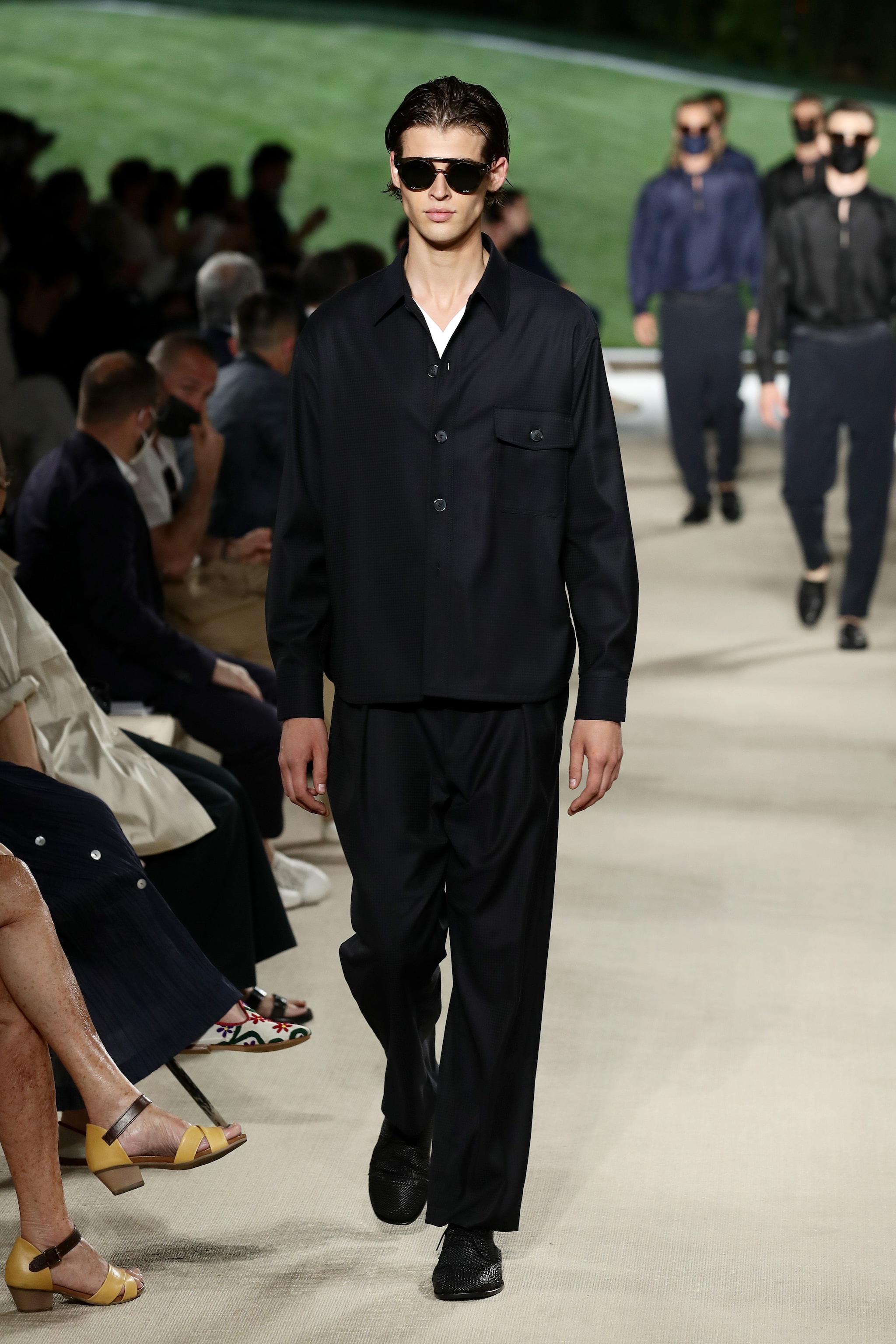 Con una doppia sfilata Giorgio Armani ha presentato la sua collezione Primavera/Estate 2022 in via Borgonuovo 21, dove ha iniziato la sua avventura nella moda. Una delle pochissime sfilate in presenza in un'edizione di Milano Moda Uomo ancora fortemente digitale per via delle restrizioni anti-Covid. La collezione è nata durante il lockdown e coniuga la comodità e lo stile rilassato sperimentato in questi mesi con l'essenza dello stile Armani: compostezza, eleganza, classe.