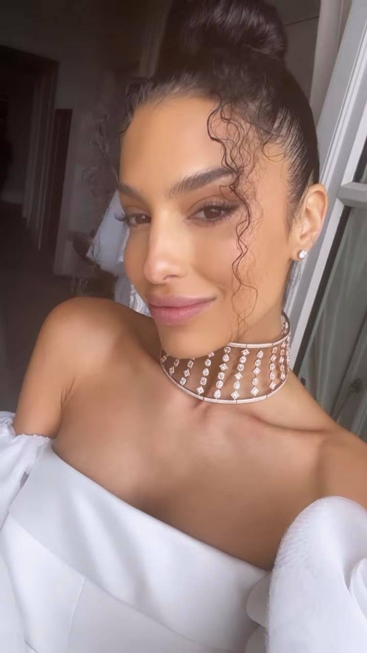 Marco Verratti e Jessica Aidi si sono sposati, dando vita a una spettacolare cerimonia alle porte di Parigi. La modella ha sfoggiato quattro diversi abiti bianchi, tutti firmati Milla Nova, e ha completato i look bridal con un preziosissimo collier rigido in oro bianco tempestato di diamanti (di Paillard Jewelry).