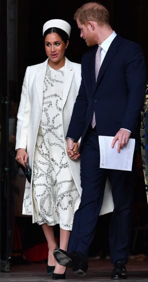 • Meghan in Line The Label, abito P.A.R.O.S.H., scarpe Aquazzura