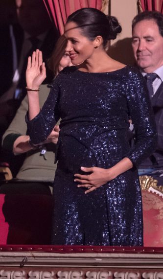 • Meghan in Line The Label, abito P.A.R.O.S.H., scarpe Aquazzura