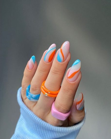 Da qualche tempo sui social c'è una manicure protagonista: è la swirl nail art, con le unghie decorate da linee morbide, sinuose e coloratissime. Una manicure senza regole precise che rende protagonisti i colori per una nail art di tendenza, colorata e originale. La swirl manicure, che qualcuno chiama anche curve manicure per via delle linee curve che la caratterizzano, è perfetta in ogni situazione perchè potrai deciderne tu forma, colore e decorazioni. Sfoglia la gallery e trova l'ispirazione per la manicure dell'estate 2021!