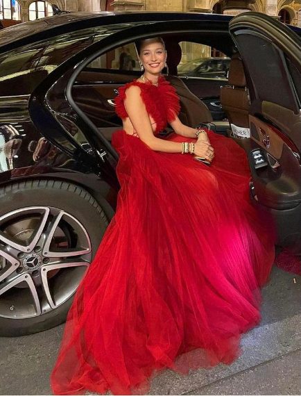 10. Rocío Muñoz Morales tra piume e cristalli dà una lezione di eleganza sul red carpet di Venezia