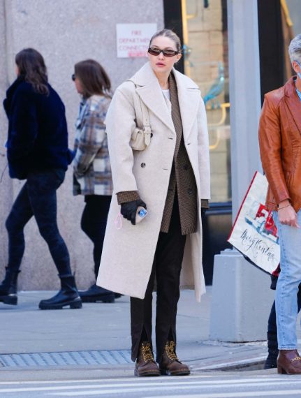 • Gigi Hadid con piumino Moncler + DingYun Zhang