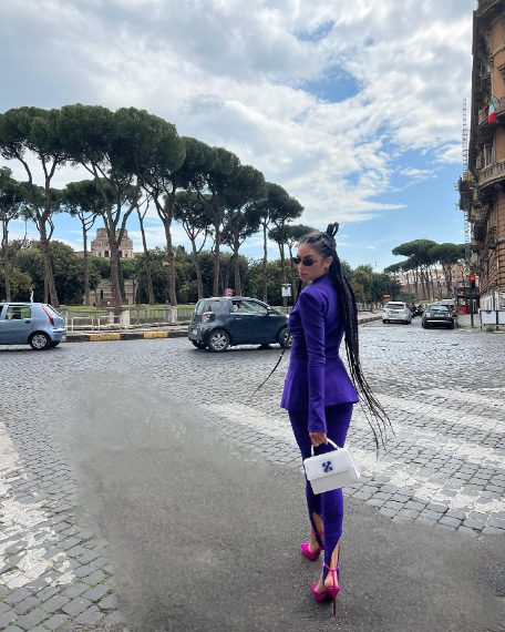 • Elodie in The Attico con borsa Off-White